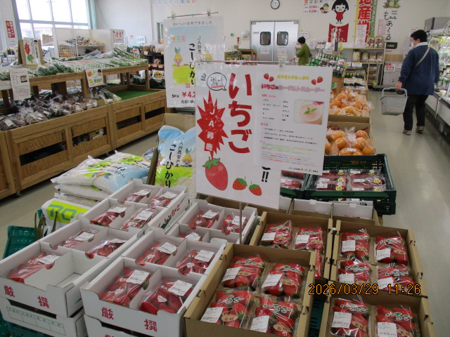 今月のおすすめ商品は、果物(いちご)ビタミンCが豊富で、みかんはグレープフルーツの2倍、アントシアニンも豊富で、目の働きを高めたり眼精疲労を予防する効果があります。