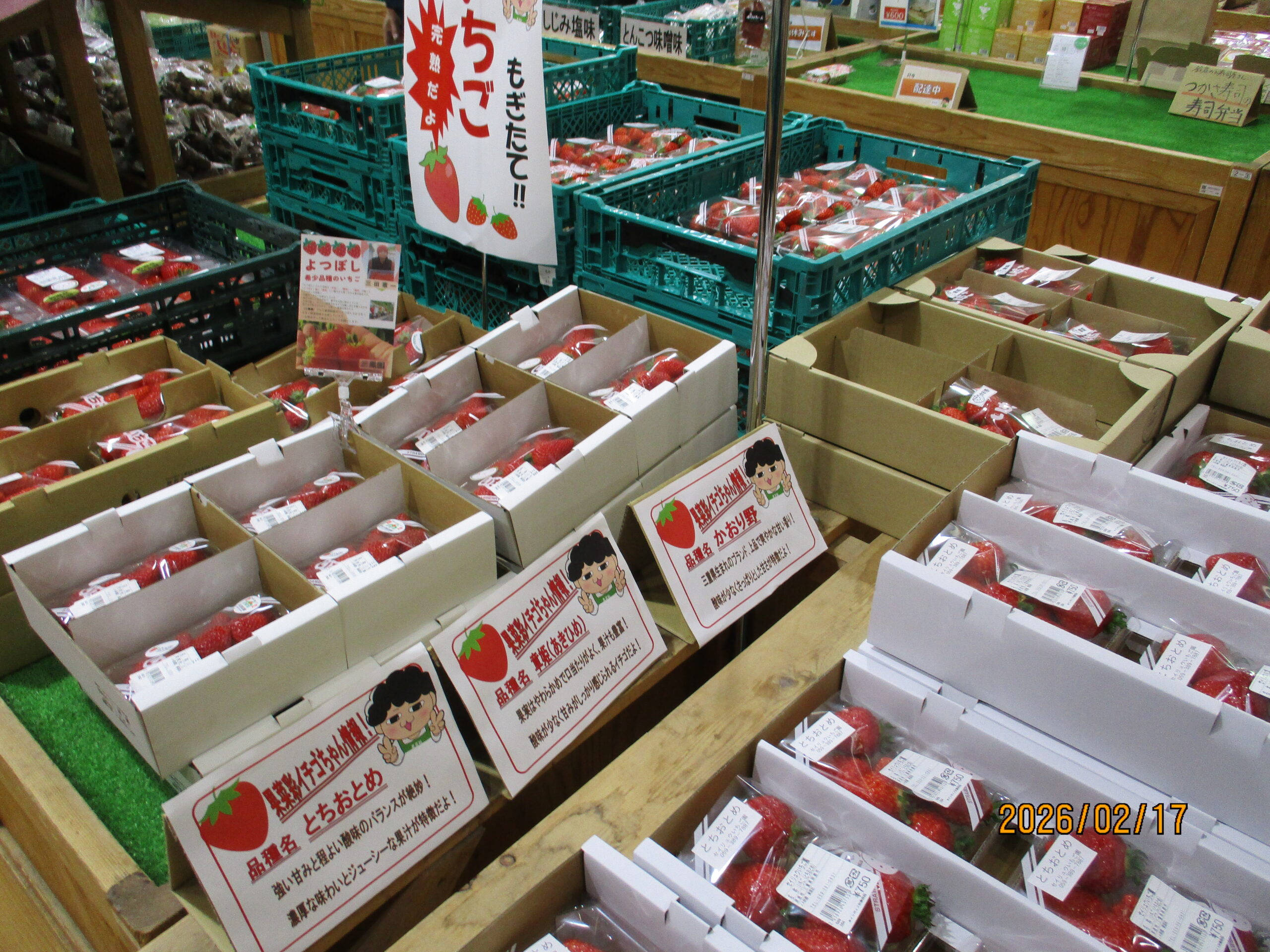 只今、果菜彩は、地元でとれた「いちご」でいっぱいだよ!